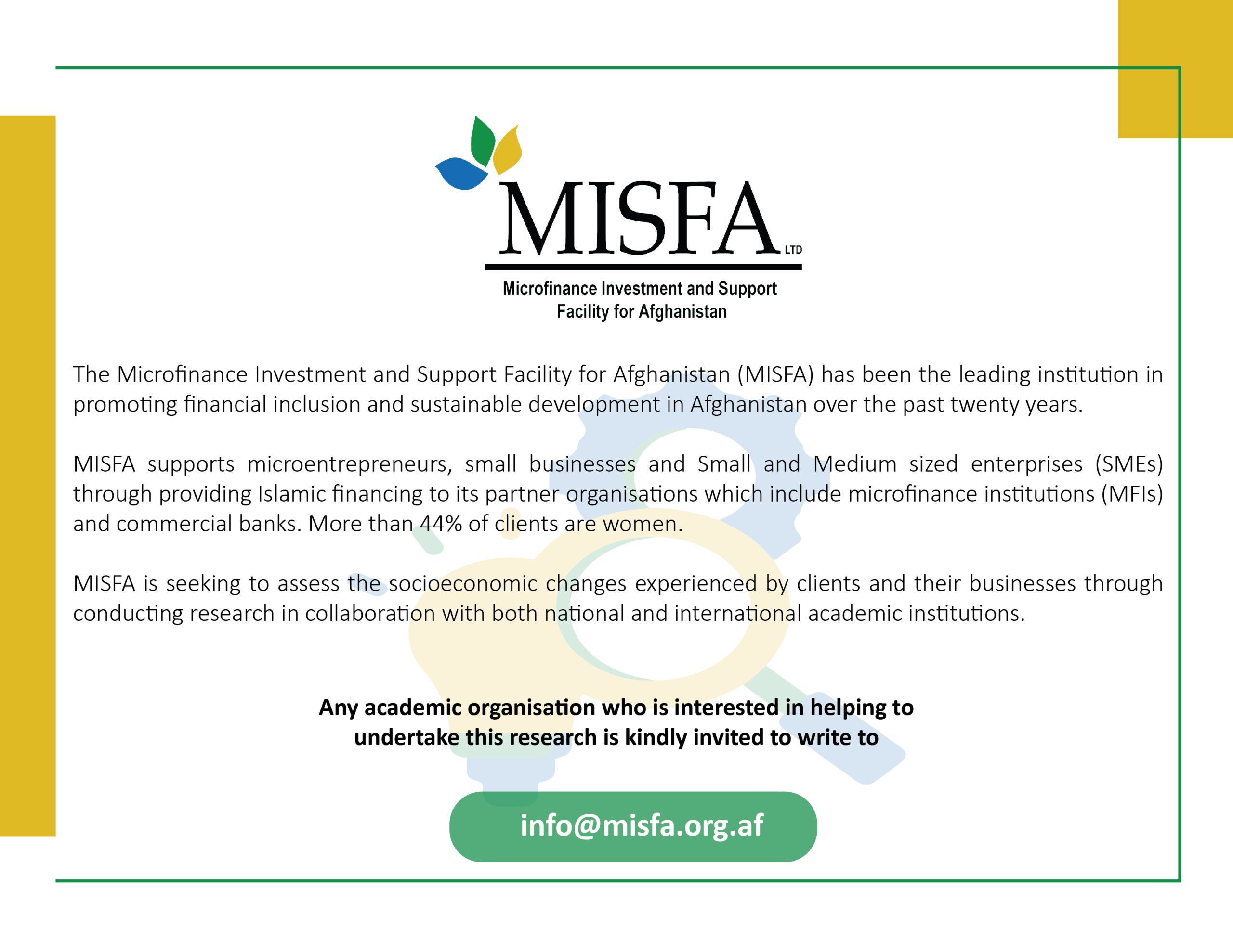 MISFA’s mission is to be a strong and efficient organization contributing to Afghanistan’s economic growth by developing a viable, inclusive financial sector.